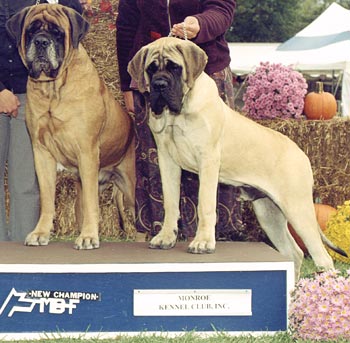 and depth. As is specified in the AKC mastiff standard, the head appears